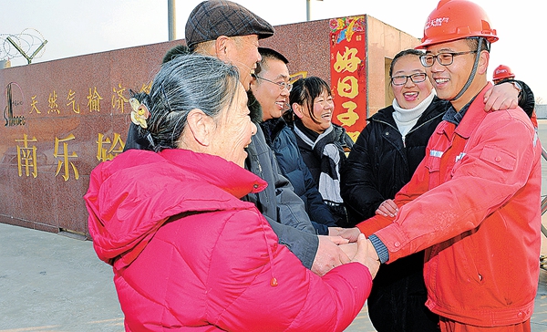2月16日,天然气榆济管道分公司河南管理处南乐输气站站长史卫华的父母和哥哥姐姐从中原油田赶到输气生产岗位,一家人在岗位上幸福地相聚。胡庆明 摄 李协举 文 |