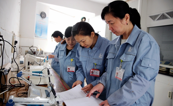 中国石化新闻网讯 至3月31日,巴陵石化公司树脂部离子膜车间技改新增的一条年产1.5万吨离子膜生产线投运一个月。巴陵石化分析检验中心树脂分析站有机分析班在完成常规分析检测任务的同时,3月份加班加点,加样分析检测447次,超过前两个月加样总和,践行“每一个数据都是承诺”,为新离子膜生产线等装置优质生产精准“报数”。 图为3月30日上午,巴陵石化分析检验中心树脂分析站技术员和有机分析班人员在查看当月加样分析记录情况。 本报记者 彭展 摄 |