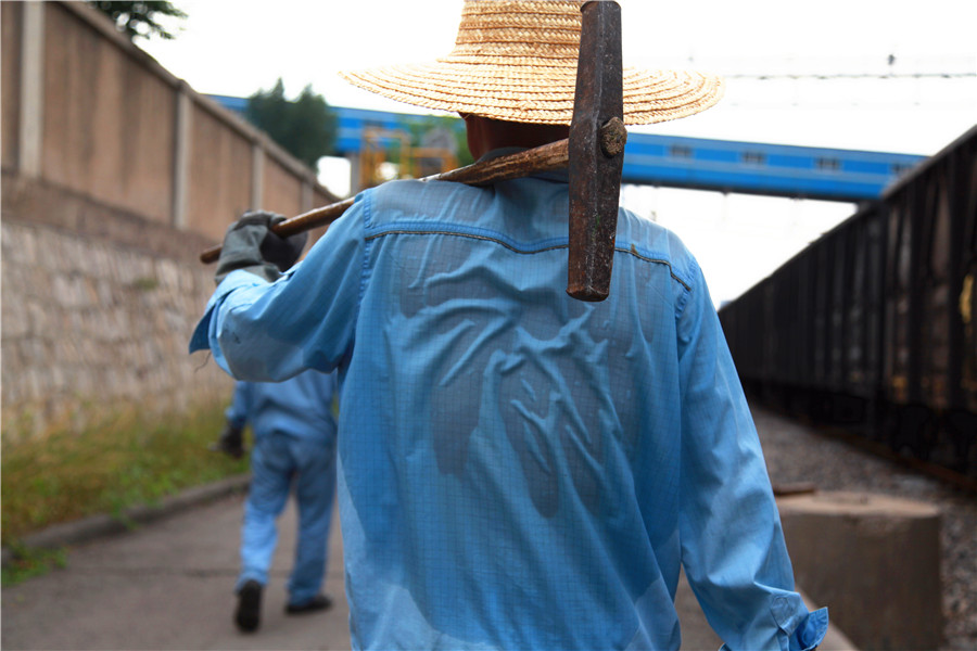 7月20日,15时58分,储运厂工电车间。经过半个多小时的忙碌,编交区班班长张锦亮与班员们忙完铁路的巡线,开始返回班组。
