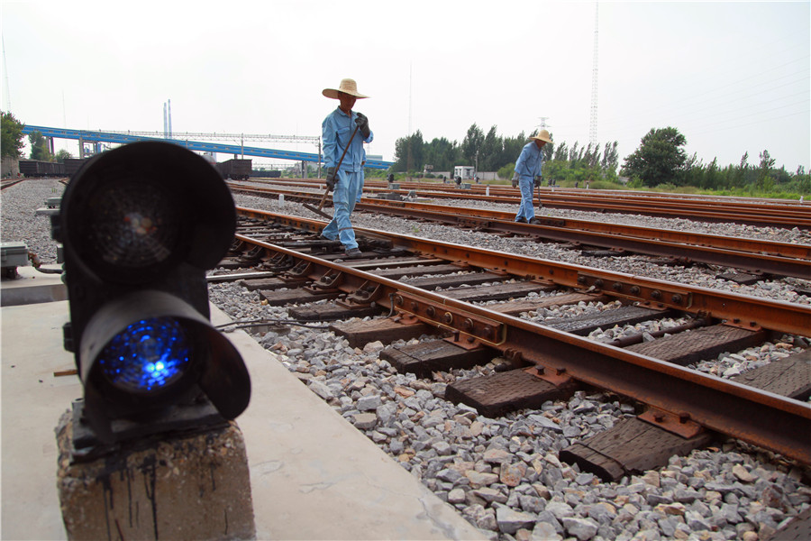 ![]() 编交区班负责工电车间交接站、编组站间五六公里的线路、道岔与设备的维护任务,每天要检查近47个道岔。今天下午的工作,是检查厂区东部的线路。