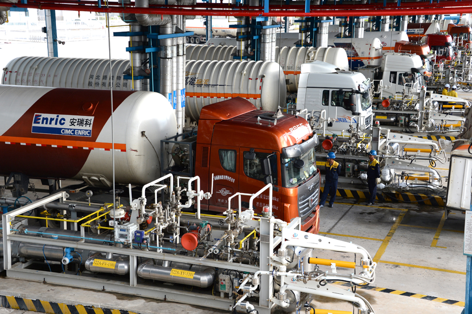 图2:每天有超过120辆槽车需要充装液化天然气,最多的时候能达到200辆。