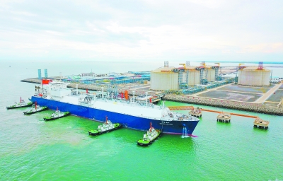 7月21日,载有16万立方米LNG(液化天然气)的巨轮“中能福石”缓慢驶入北海铁山港码头。北海LNG项目自2016年4月投产以来,累计接卸LNG船38艘、LNG242万吨,与使用燃煤相比,可减排二氧化碳880万吨、二氧化硫8万吨,相当于每年植树3600万颗,为华南地区的碧水蓝天和天然气保供做出积极贡献。 图为中能福石号LNG运输船到达接收站。 胡庆明 摄 赵治邦 陈晓琴 杨 庆 文 |