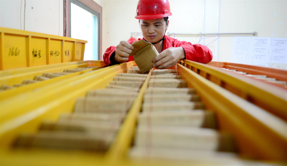 图3:录井是在钻井过程中的一个重要环节,通过录取随钻过程中的固体、液体、气体等井筒返出物信息,以此建立录井地质剖面、发现油气显示、评价油气层的工作。图为录井公司冉景军在整理织2-16-64井的1500多包岩屑。