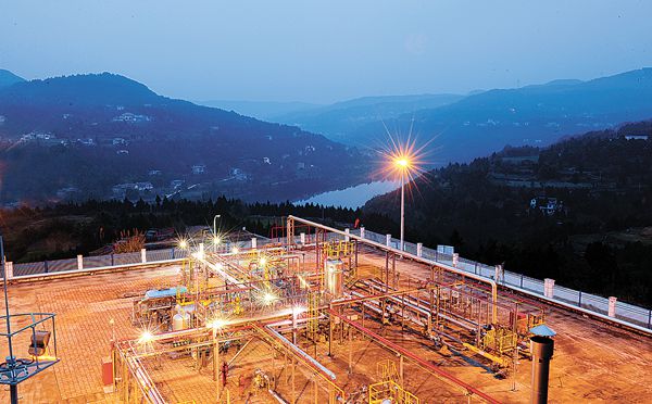 夜幕降临,元坝气田井站灯光璀璨,与静谧的江水、山林融为一体。 本报记者 胡庆明 摄