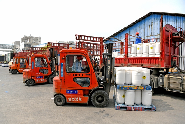 随着疫情在全球暴发,漂粉精消毒剂订单需求持续增长。江汉盐化工认真落实百日攻坚创效行动部署,结合实际细化任务指标,加大市场开拓力度,及时了解各地物流车辆管控政策变化,先后恢复深圳、上海、武汉口岸的产品出口运输渠道,漂粉精销量呈现连续攀升的态势。截至4月1日,累计向意大利、法国、澳大利亚、新西兰、泰国、越南等国家出口漂粉精产品13014吨。图为漂粉精发运现场。 宋国梁 摄 黄红霞 文