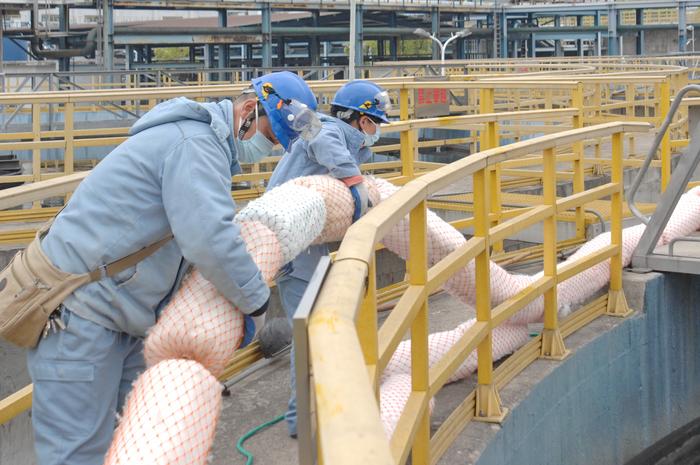 中国石化新闻网讯(唐向阳 柯斌) 九江石化水务组织人员消除污泥浓缩池油污的隐患,技术人员、区域管理员、水道人员等一起将污泥浓缩池溢流堰和排水沟冲洗干净。 为更好处理污泥浓缩池的油污,有利于污泥干化处理污泥,水道班的师傅们克服脏和累,将污泥浓缩池的35个旧吸油绳予以更换,先将重达20多斤重吸满油污吸油绳,从沟中拉上来装车运走,然后又将组装好的长达30多米长的吸油绳安放在泥浓缩池的出水沟中。 水道班团结协作不辞劳苦,肩挑手拉,克服困难,将吸油绳搬运到浓缩池上安放好,消除污泥浓缩池油污的隐患,为污水装置安全生产顺利进行,打下了坚实的基础。 ![]() ![]() ![]() ![]() |