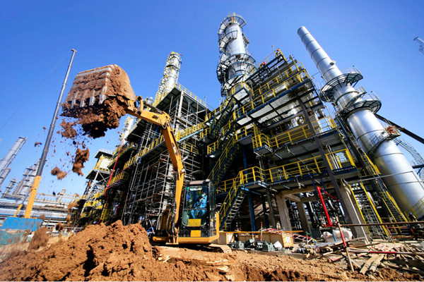 中国石化新闻网讯 洛阳石化炼油结构调整项目2017年7月22日启动,总投资45亿元。在洛阳石化现有800万吨/年炼油装置的基础上,采用“渣油加氢+加氢裂化”工艺路线,通过新建和改造部分装置,形成1000万吨/年加工能力。 5月12日,在该项目新建260万吨/年渣油加氢装置、120万吨/年连续重整联合装置、45万吨/年芳烃抽提装置、10万吨/年硫磺回收装置工程建设现场,千余名石化建设者正抓紧进行收尾施工,这标志着四套装置的建设全面步入“冲刺”中交阶段。图为拔地而起的装置前面,一台钩机正在施工。