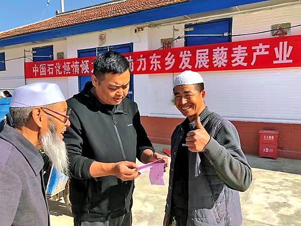 杨成(中)帮村民核验藜麦收购的斤数和金额。(资料图) 施亚茜 文/图 6月的东乡雨水充沛、适宜种植,前些日撒下的藜麦种子发了芽。“这长出来的洋玩意儿不就是俺们山上的灰条菜,真的会有人收吗?”甘肃临夏州东乡族自治县高山乡洒勒村的马哈什,看着外形绿油油并不起眼的藜麦苗怀疑道。 “放心,这藜麦是高经济作物,不出半年时间肯定让大伙儿丰收。”杨成拍拍马哈什的肩膀自信地说。 面对乡亲们的质疑,杨成压力倍增,很多人贷了款跟着他种植藜麦。但杨成又信心满满。他曾同农科院专家一道开展藜麦技术培训、田间管理,这些经历让他和乡亲们交流的每一句话都充满了底气。 杨成,集团公司派驻东乡族自治县布楞沟村第一书记,共产党员。2018年起,中国石化联合甘肃省农科院在布楞沟流域开始建立东乡藜麦种植产业链新模式。他很快熟悉藜麦种植、加工、销售的情况,又到其他村了解乡亲们的种植意愿。 2019年9月,在中国石化助力东乡藜麦产业发展收藜仪式上,乡亲们的心里乐开了花。他们收割的藜麦被甘肃石油全部收购,一直困扰的心结终于解开了。 “以前我们种植土豆、玉米,每亩每年只能挣800元左右,现在改种藜麦,产量上去了,每亩收入至少翻一番。”乡亲们高兴极了。 心结解开了,可是新问题又出现了。要保质保量地收购藜麦,仓储、人力、物力的问题都急需解决。杨成出方案、排计划、跑粮库、走路线、掐时间、算资金、找加工厂……一块块硬骨头被啃了下来。他带着工作组用了不到20天时间,把21个村26万公斤的藜麦全部收购完成,并协助银行将523万元的藜麦收购款,逐村逐户准确地汇入到941户农户手中,让每家种植户不差一分、不少一斤。 “扶贫路上,党员干部要敢担当、带好头;脱贫路上,哪个民族都不能少,哪户村民也不能少。”站在今年的田间地头,看着地里的藜麦苗,杨成坚定地说,“这就是乡亲们的希望,也是我工作在这里的意义和责任。” 开栏的话:今年是决胜全面小康、决战脱贫攻坚之年。为了记录呈现全面建成小康社会伟大壮举,彰显我们党担当使命、一诺千金的不懈追求,展现人民群众共建美好家园、共享幸福生活的生动实践,今日起本报开设专栏,把镜头对准脱贫攻坚一线,讲述中国石化对贫困地区进行全产业链帮扶、扶贫干部带着贫困乡亲奔小康、脱贫群众走向美好生活的动人故事。 |