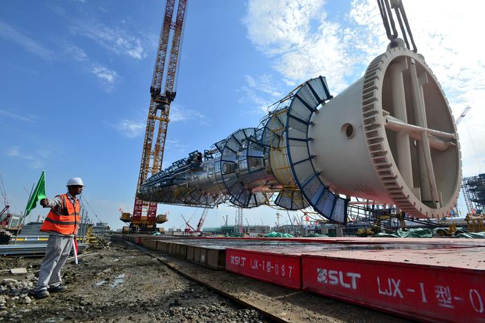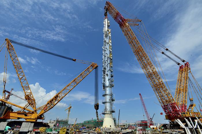 中国石化新闻网讯(张见明) 9月27日13时07分,经过3小时50分的吊装,设备净重1170吨、吊装重量1349吨、高99.2米、最大直径4米、最大壁厚96毫米的镇海基地煤焦制氢装置变换气吸收塔顺利吊装就位。这是镇海基地煤焦制氢装置的首吊,也是镇海基地项目中采用4000吨级履带式起重机与1000吨级溜尾吊车协作实施超大设备吊装的首吊。 这台千吨超限设备从设计、制造到如期成功吊装就位,充分体现了炼化工程集团宁波工程公司的一体化优势。该非标设备是由该公司宁波天翼制造公司承担制造的,并于8月29日如期交付安装现场。在设备运至安装现场后,该公司镇海基地项目部立即组织施工单位,迅速组织开展设备“穿衣戴帽”突击行动,分别成立党员先锋岗、攻坚突击队、架子搭设决战队、管道安装突击队、团青突击队,全面展开劳动保护、工艺管线、保冷等相关施工任务突击。参与该超限设备施工的作业单位,充分发扬一家人、一条心、一股劲、一个目标的四一精神,采取两班倒作业,确保了该超限设备的如期实施吊装。 ![]() 图为变换气吸收塔吊装中 ![]() 图为变换气吸收塔吊装中 ![]() 图为变换气吸收塔吊装中 ![]() 图为变换气吸收塔吊装中 ![]() 图为变换气吸收塔吊装中 ![]() 图为变换气吸收塔吊装中 ![]() 图为变换气吸收塔吊装中 ![]() 图为变换气吸收塔吊装中 ![]() 图为变换气吸收塔吊装中 ![]() 图为变换气吸收塔吊装中 ![]() 图为变换气吸收塔吊装中 ![]() 图为变换气吸收塔吊装中 |