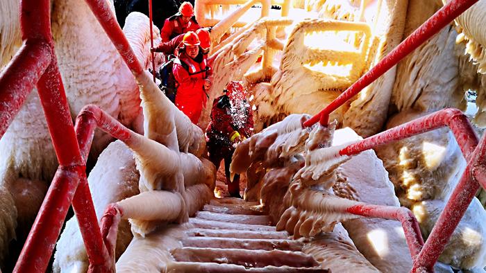 中国石化新闻网讯(陈杰 何瑞) 近期,寒潮低温形成的大面积海冰给海上生产带来一定影响。此次海冰规模为近十年来之最。海洋采油厂启动海上生产应急预案,强化生产运行,组织船舶破冰清理航道,安全巡护海上平台油水井和生产设施,加强海管海缆等关键装置及要害部位巡检和保温,做好队伍、装备和物资准备,将寒潮海冰给原油生产造成的影响降至最低,全力保障海上生产安全平稳。 ![]() 1月11日,胜利油田海洋采油厂员工正在清除爬梯积冰,登平台进行检修作业。 |