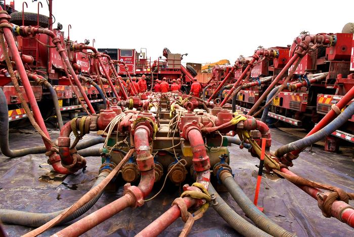 中国石化新闻网讯(罗丽娟) 西北油田随着油田开发的逐步深入,原油高产、稳产难度不断增大,采油三厂化“压力大”为“动力强”,干部员工以“闯”的精神、“创”的劲头、“干”的作风,向着2021年原油产量指标戮力进发。他们以“价值创造、保效增效”为指导,树立效益优先的理念,坚持全链条系统思维,针对有储层潜力的长停井、低效井,进一步加大措施力度。图为:塔河油田奥陶系油藏托甫台区TP249XCX井,酸压作业施工中。目的是,通过对该奥陶系6375.00-6473.00m裸眼井段进行酸压改造,在地层中建立人工酸蚀裂缝,沟通井筒周围的储集体,以达到建产的目的。 ![]() ![]() ![]() TP249XCX井,酸压作业施工现场 ![]() TP249XCX井,酸压作业施工现场 ![]() TP249XCX井,酸压作业施工 ![]() 安装管线 ![]() TP249XCX井,酸压作业施工现场 ![]() 技术人员在酸压车上全力关注视频参数变化 |
