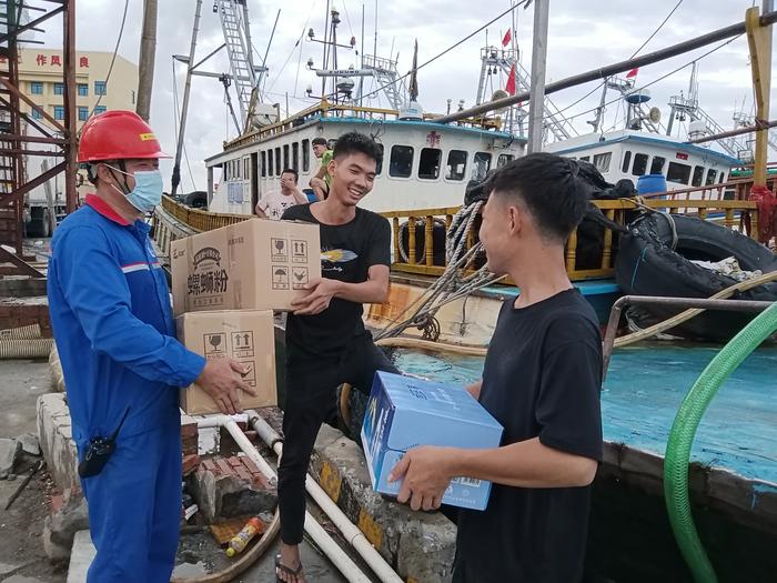 多重优惠活动,增值一条龙服务。在开海期间开展“加油优惠购冰”“加油即送礼品”等营销活动,吸引更多渔船前来加油。党员纷纷奔赴一线,主动服务加油、加冰渔船,并为渔民送上大米、花生油、饮用水等出海所需用品,加油加水加冰一条龙服务,为客户解决人手不足,停泊难等问题。