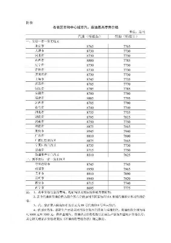 来源:国家发改委价格司 根据近期国际市场油价变化情况,按照现行成品油价格形成机制,自2021年9月18日24时起,国内汽、柴油价格(标准品,下同)每吨分别提高90元和85元。调整后,各省(区、市)和中心城市汽、柴油最高零售价格见附表。相关价格联动及补贴政策按现行规定执行。 附:各省区市和中心城市汽、柴油最高零售价格 |