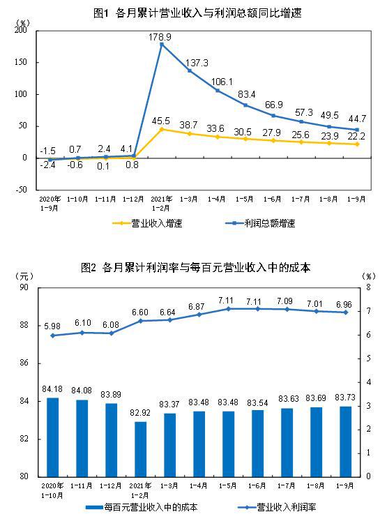 原题:国家统计局:三季度工业企业利润同比增长14.3% 企业经营明显改善 人民网北京10月27日电 (申佳平)今日,国家统计局公布的数据显示,2021年1-9月份,全国规模以上工业企业利润同比增长44.7%。三季度,工业企业利润同比增长14.3%,继续保持两位数增长。国家统计局工业司高级统计师朱虹表示,三季度工业生产延续恢复态势,利润保持良好增势,企业效益状况不断向好,盈利水平、资产负债率及资金周转状况同比持续改善。 工业企业利润增长较快 9月利润增速较上月加快6.2个百分点 数据显示,1-9月份,全国规模以上工业企业利润同比增长44.7%,两年平均增长18.8%。三季度,工业企业利润同比增长14.3%,继续保持两位数增长;两年平均增长15.1%,增速比二季度略有回落,总体保持良好增势。其中,9月份利润同比增长16.3%,增速较上月加快6.2个百分点。 朱虹具体介绍,超七成行业盈利规模超过疫情前水平。三季度,在41个工业大类行业中,有29个行业利润较2019年同期增长,占70.7%,大多数行业总体效益状况好于疫情前。其中,有18个行业利润两年平均增速达到或超过10%。 同时,高技术制造业利润增长较快。三季度,高技术制造业利润同比增长33.6%,增速高于规模以上工业平均水平19.3个百分点,引领作用显著。其中,医药制造业受国内外疫苗需求量较大、企业产销两旺等因素拉动,三季度利润同比增长66.8%,延续年初以来的高速增长态势;电子及通信设备制造业受企业收入平稳增长、投资收益由降转增等因素拉动,利润同比增长33.4%,增速比二季度加快14.6个百分点;航空航天器及设备制造业利润同比增长25.4%,保持较快增长。 采矿业、原材料制造业盈利规模明显扩大。三季度,采矿业利润同比增长2.04倍,原材料制造业增长42.5%,继续保持快速增长态势,对工业企业盈利改善提供重要支撑。其中,受产品价格持续上涨等因素拉动,三季度,煤炭行业利润同比增长2.72倍,增速较二季度大幅加快;油气开采、有色、石油加工、化工、钢铁行业利润分别增长2.97倍、77.6%、70.8%、69.3%、42.6%,均实现快速增长。 此外,消费品制造业利润稳定恢复。三季度,随着市场需求持续恢复,消费品制造业利润同比增长9.7%,两年平均增长12.0%,呈现稳定恢复态势。其中,化纤行业利润同比增长2.15倍,呈现高速增长;家具制造、文教工美行业利润分别增长10.6%、8.3%,增长较为平稳。 企业运营状况明显改善 资产负债率继续走低 朱虹介绍,三季度,随着减税降费、支持实体经济发展等政策措施持续显效,规模以上工业企业每百元营业收入中的费用同比减少0.39元,下降明显。企业营业收入利润率为6.70%,同比提高0.13个百分点。盈利状况改善带动企业资产负债率继续走低,9月末,企业资产负债率为56.3%,同比降低0.5个百分点,较上月末降低0.1个百分点。 同时,资金周转加快,运营效率提升。9月末,规模以上工业企业应收账款、产成品存货同比分别增长11.5%、13.7%,增速较上月末分别回落0.6、0.5个百分点,流动资金占用情况改善。企业应收账款平均回收期同比缩短3.8天,较上月末缩短0.4天。产成品存货周转天数同比缩短1.5天,较上月末缩短0.3天。企业资金使用效率提高,经营状况进一步改善。 朱虹表示,三季度规模以上工业企业利润保持良好增势,但大宗商品价格高位运行、供应链产业链不够畅通等因素影响企业盈利持续恢复,同时上下游行业间盈利不平衡问题较为突出,工业企业效益恢复的基础仍需进一步巩固。下一步,要保持宏观政策连续性稳定性,做好经济跨周期调节,稳定大宗商品价格,持续扩大内需、促进转型升级,激发市场主体活力,确保工业经济运行在合理区间。 |