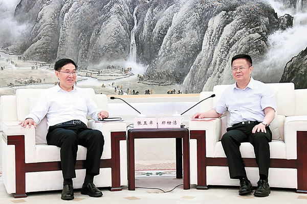 7月10日,集团公司董事长、党组书记张玉卓在宁波市拜会浙江省委副书记、宁波市委书记郑栅洁,介绍中国石化改革发展情况,交流双方深化合作等事宜。