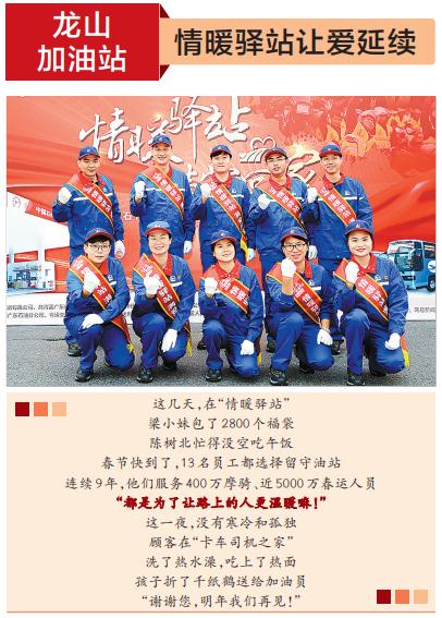“情暖驿站”公益活动自2013年启动以来,连续9年服务超过400万摩骑和近5000万春运人员。龙山加油站作为广东石油“情暖驿站” 的起点站,每年有超过3万的返乡摩骑从这里经过。