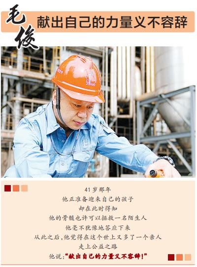毛俊,上海石化一名普通的安全员,也是上海市第181例造血干细胞捐献者。