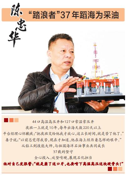 30多年的风雨征程,看着祖国的海洋石油事业蓬勃发展,陈忠华仿佛看到了一路走来的自己。