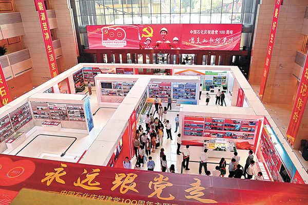 6月18日,中国石化在京单位组织干部员工到总部参观“永远跟党走——中国石化庆祝建党100周年主题展览”。