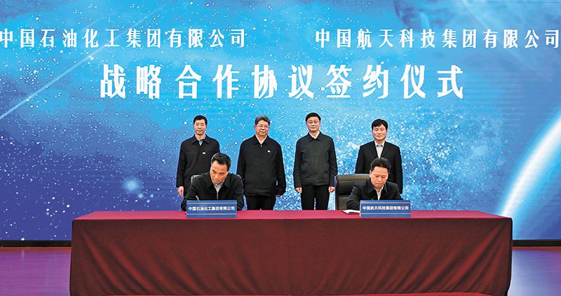 中国石化新闻网讯 记者赵士振报道:3月23日,中国石化与中国航天科技集团公司在北京签署战略合作协议,双方将发挥各自优势,在新能源、新材料、节能环保等领域开展协同攻关,强化全方位战略合作。集团公司董事长、党组书记马永生与航天科技集团公司董事长、党组书记吴燕生座谈并一同见证签约。