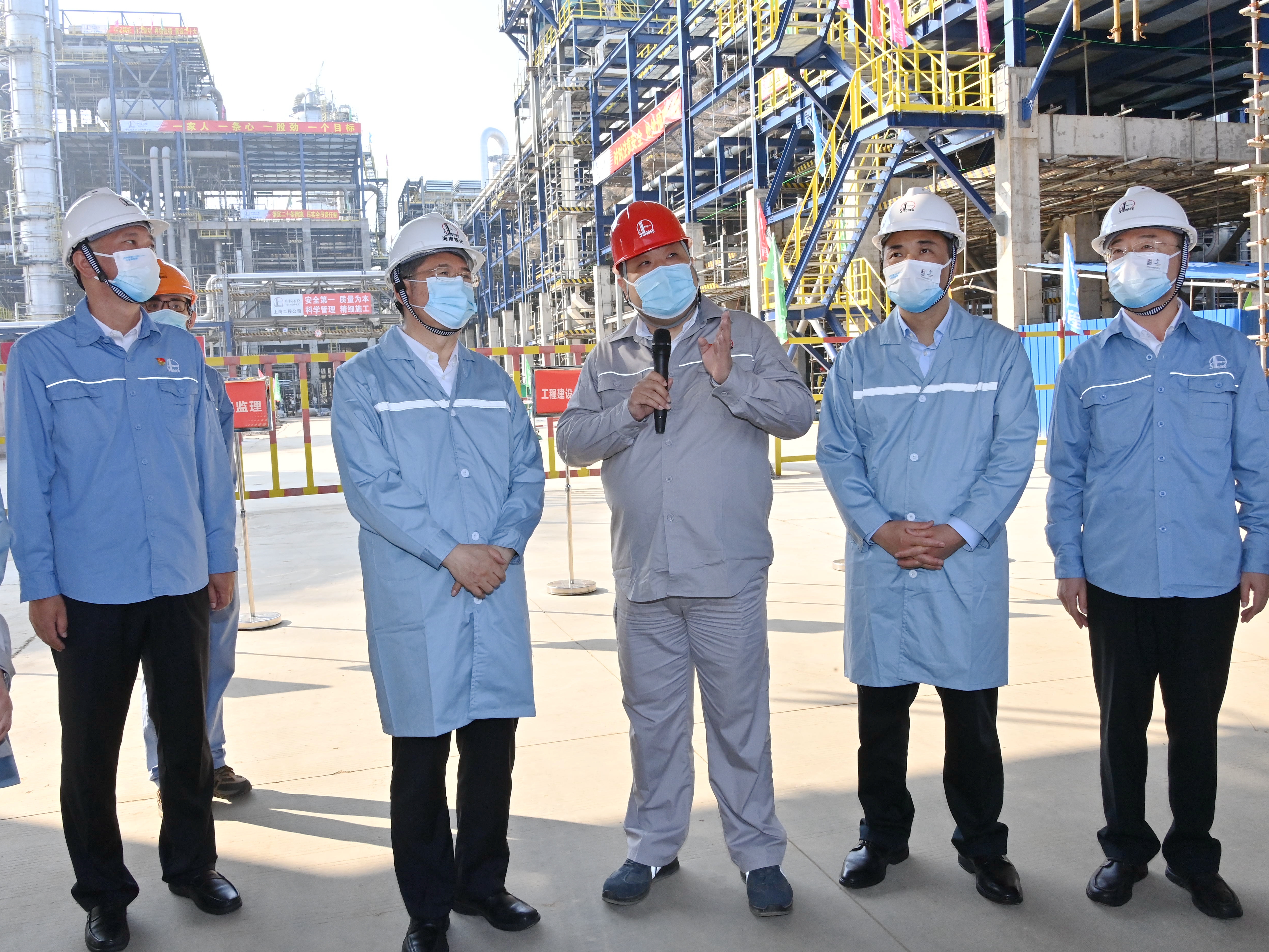 图为4月23日,马永生一行在海南炼化100万吨/年乙烯项目建设现场调研。 本报记者 章 铮 摄