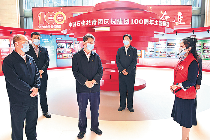 5月6日,集团公司党组书记、董事长马永生,党组副书记赵东在总部参观中国石化共青团庆祝建团100周年主题展览。
