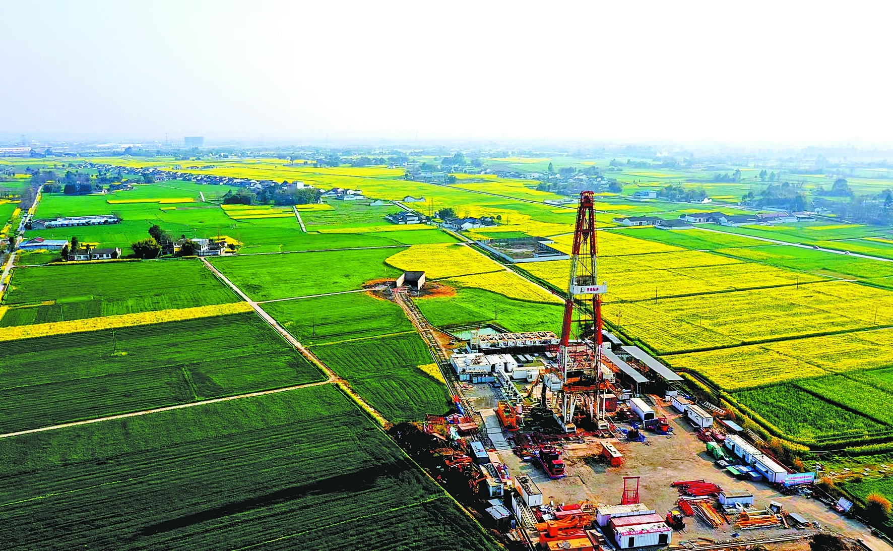 图为3月的西南石油局川西陆相气田与周边麦田融为一体。记者 王平 摄