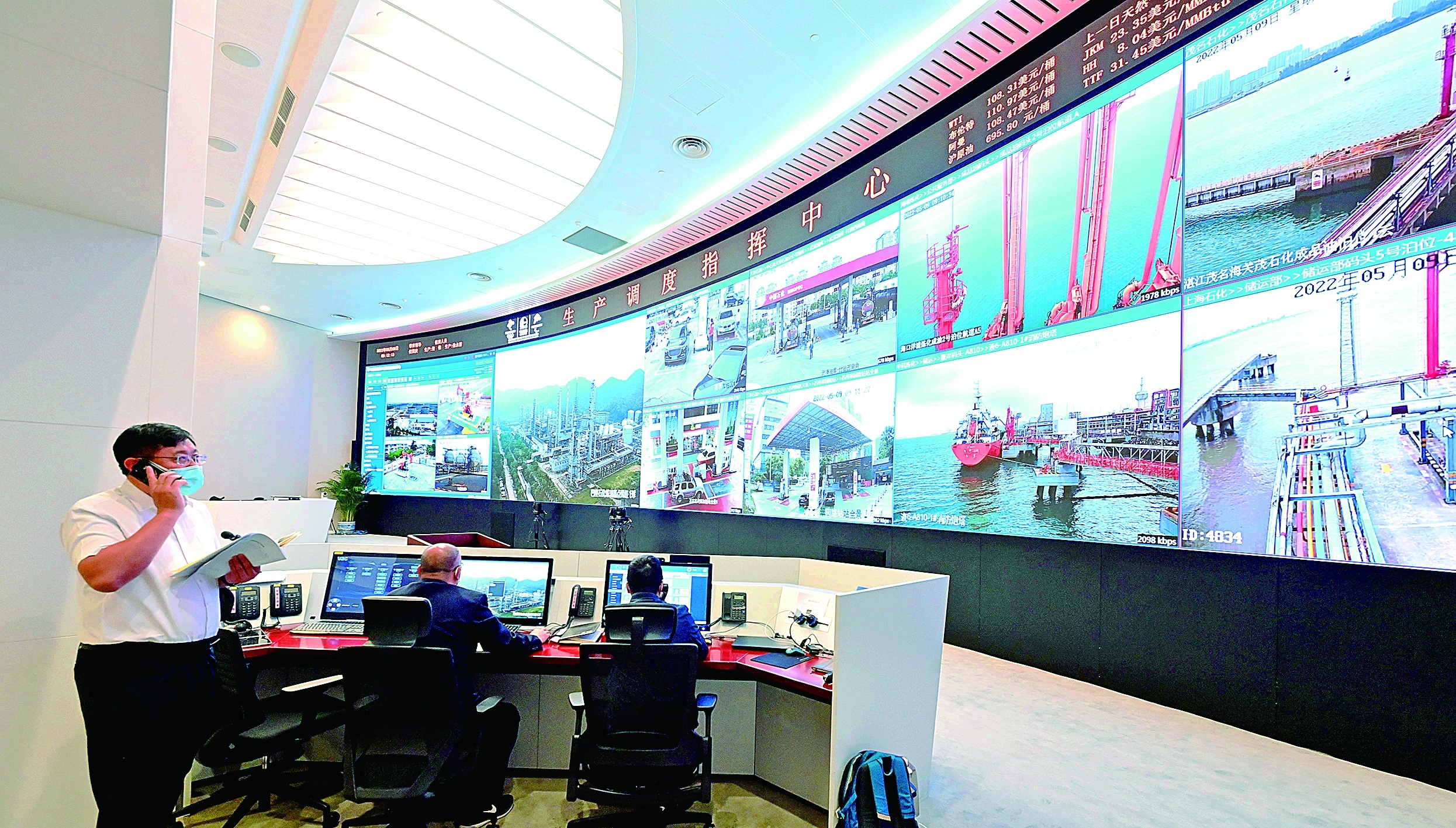 图为5月北京疫情期间,工作人员在中国石化生产调度指挥中心协调调度。记者 章铮 摄