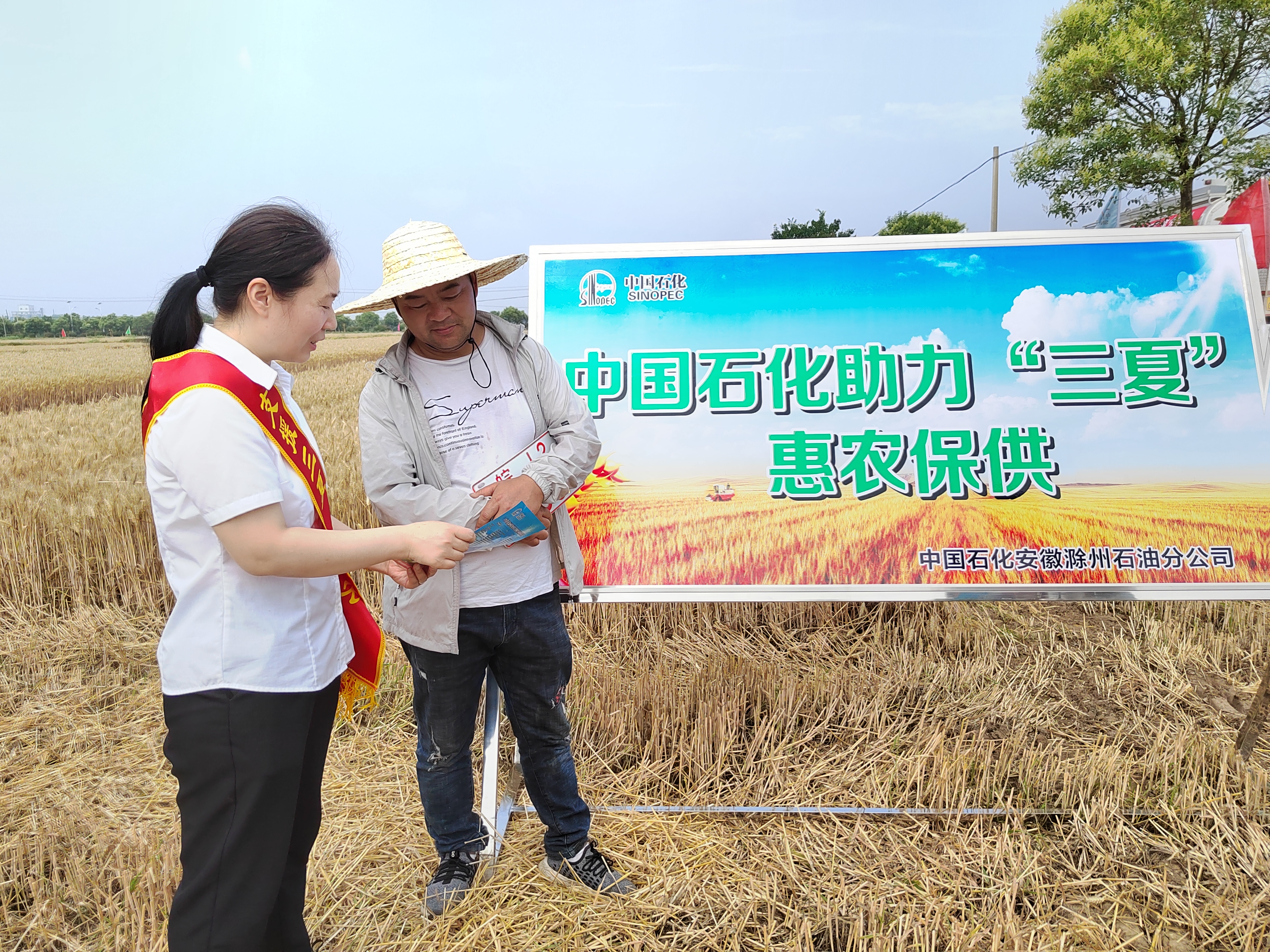 中国石化新闻网讯 近日,安徽滁州地区五百多万亩小麦进入开镰收割期。为保障夏粮丰收,安徽滁州石油设立48座惠农加能站,并开辟农用机械加油绿色通道,组织各片区经理、站长、加油员等组成9支志愿服务队,开展送油到田间服务,切实把助农惠农落到实处,全力保障“三夏”农业用油,助农颗粒归仓。(李楠 李湘)