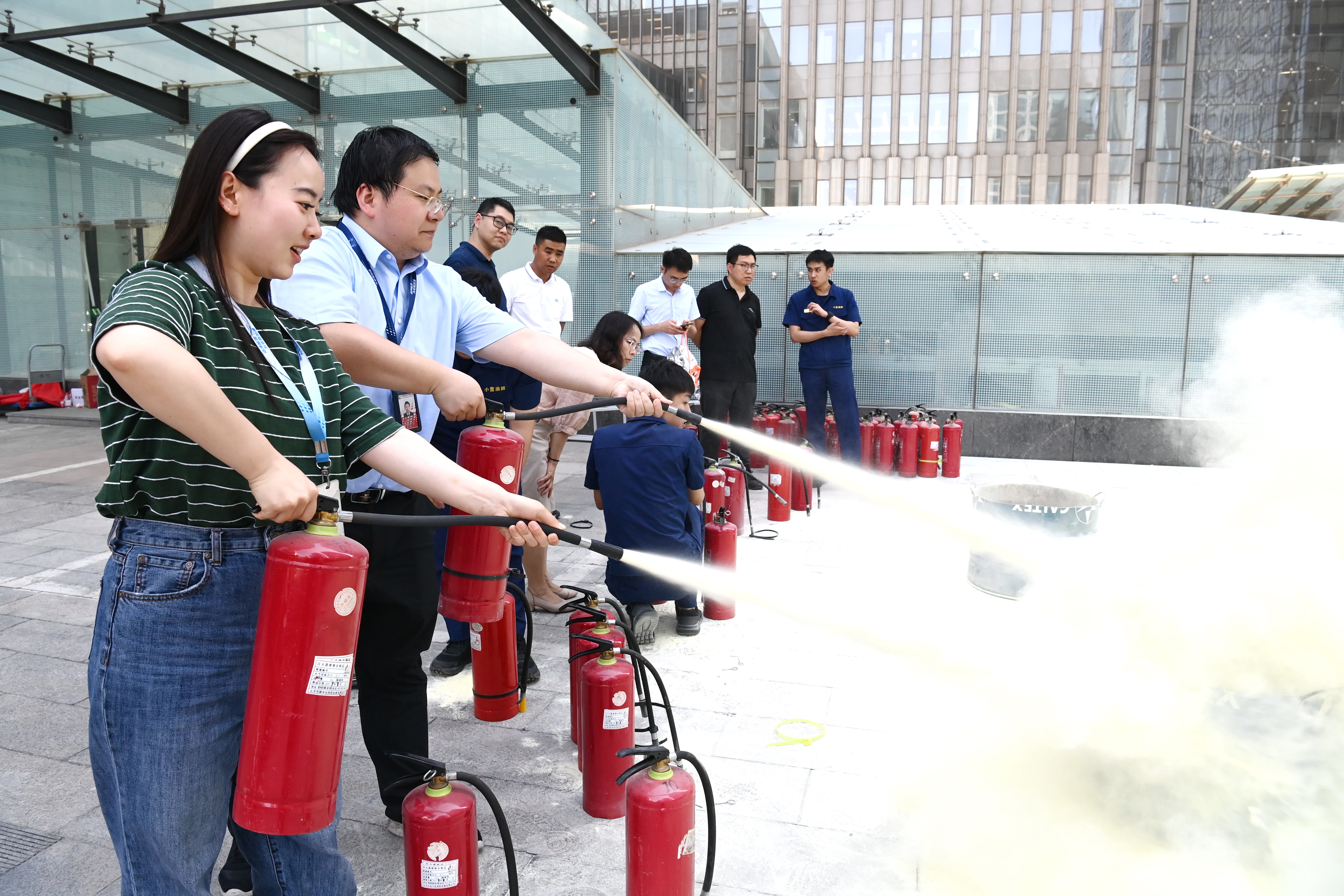 图为总部办公区40个部门(单位)参加消防疏散演习。