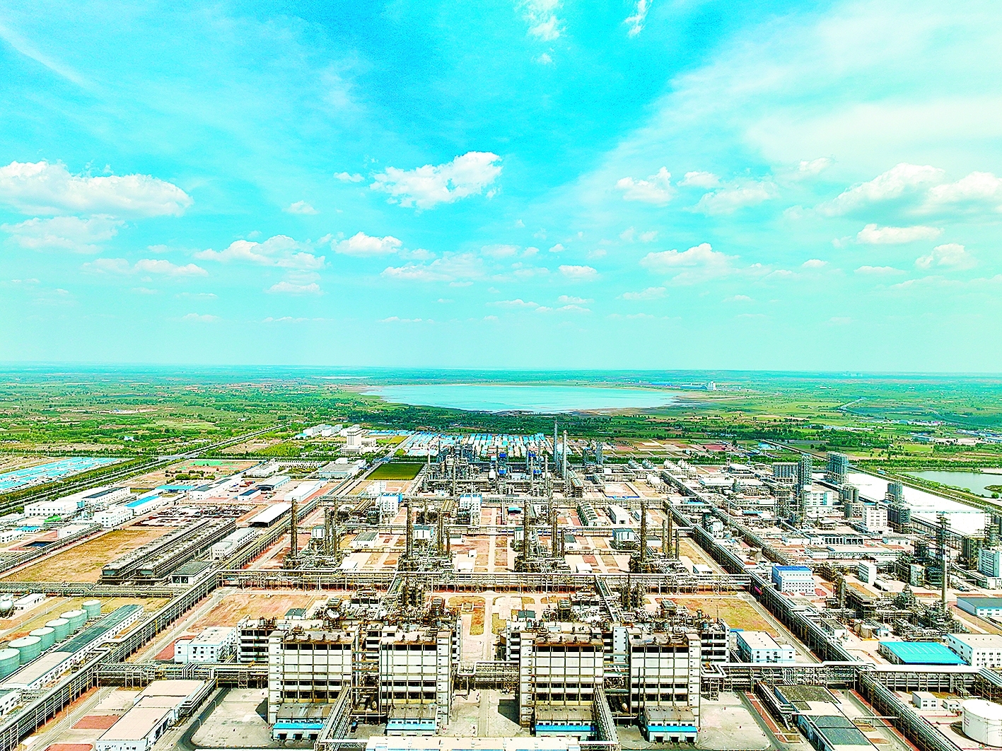 中国石化成立40年来,针对我国富煤、贫油、少气的资源状况,适时发展煤化工产业,于2007年合资成立中天合创公司,其煤化工项目集成自主研发的S-MTO技术和多项煤化工领域核心技术,工艺及设备技术水平处于世界前列。近年来,该公司统筹减碳与转型升级,加快推进绿氢耦合煤化工项目,持续推动高端化、多元化、低碳化、高效化发展,促进能耗指标降低、水效能效领跑,煤炭清洁转化效率、单位聚烯烃产品水耗等指标处于国内领先水平,实现清洁生产和绿色低碳发展,极大助力国家级大型煤制烯烃基地加速形成。中天合创 供图 夏卫红 文