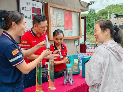 9月12日,贵州贵阳石油开展“质优量足 客户满意”质量月活动。他们在加油站现场搭设油品质量咨询台,通过最直观的方式向客户普及油品数质量知识和加油常识,解答客户疑问。图为小寨坝站员工向客户讲解真假燃油宝辨别办法。陈飞飞 摄