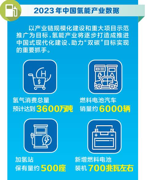 氢能在交通、贸易等增量空间将不断渗透,预计2023年中国氢气消费总量增速稳中有升,约3600万吨。可再生能源制氢示范项目持续投运,累计年产能将突破15万吨。氢燃料电池汽车交通示范场景不断增多,需求将进一步释放。东部地区重点在冷链、环卫、乘用车等领域突破,西部地区则实现重卡应用部署,非燃料电池示范城市群地区车辆落地、副产氢丰富区域热电联供示范或将成为市场重要增量。预计2023年燃料电池汽车销量6000辆,加氢站保有量500座,新增燃料电池装机700兆瓦左右。