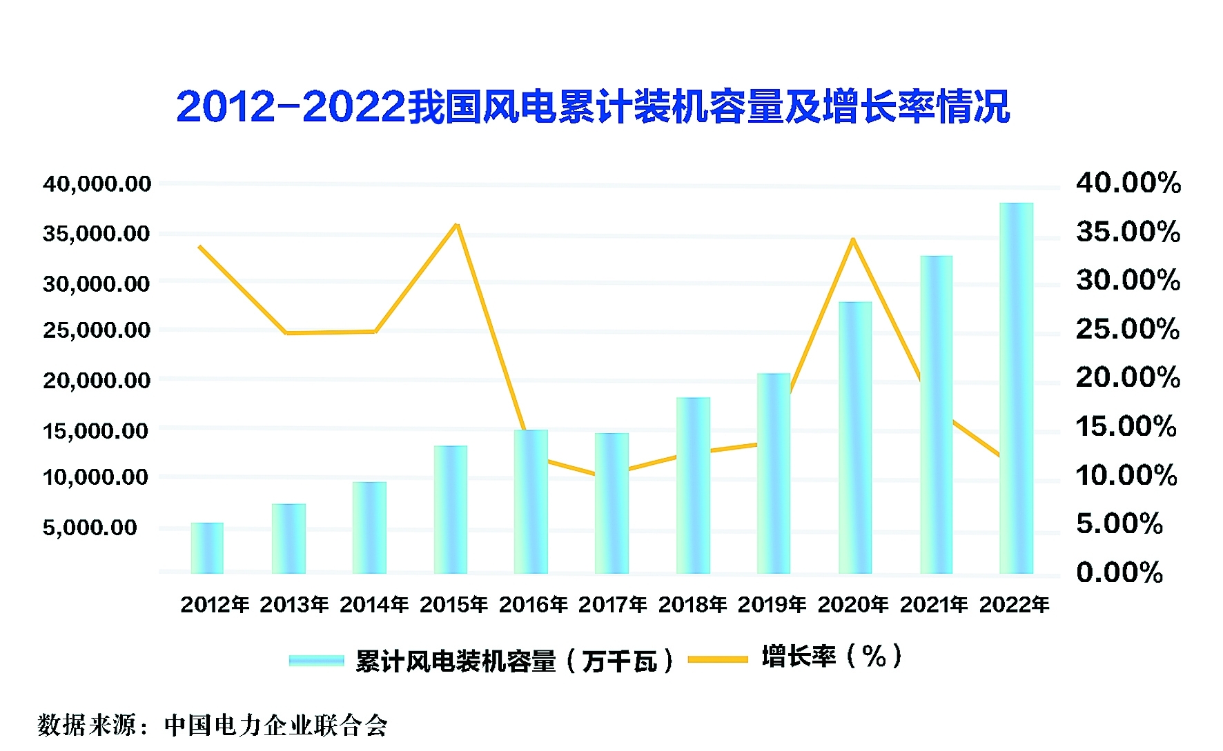从陆地到近海再到深远海,我国风电行业走出了一条从无到有、从小到大、从弱到强的崛起之路,风电装机容量持续增长。截至去年底,我国累计风电装机容量达到385.72吉瓦,占全国总装机容量的14.3%,占全球风电总装机容量的40%。我国风电装机容量快速增长得益于政府的政策扶持、资金支持和科技引领。