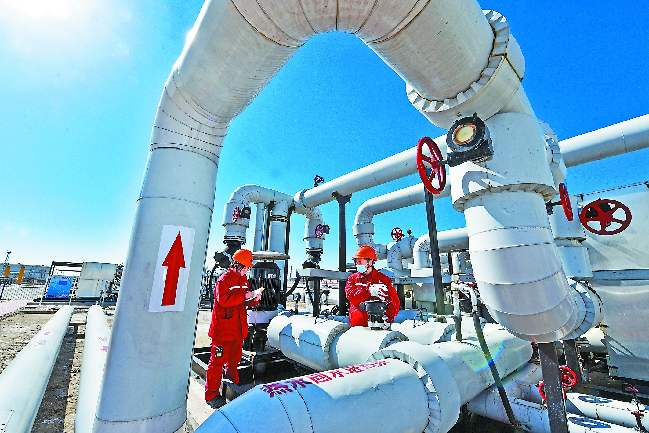 今年以来,胜利油田构建完善多元互补、洁净高效的新型能源体系,持续加强光伏、风电、地热、余热等能源利用,截至11月27日,建成投用106兆瓦集中式、45兆瓦分布式光伏发电项目,余热、地热、光热等清洁供热能力达20万吉焦,能源供给质量、利用效率和减碳水平持续提升。图为河口采油厂员工巡检“余热代气”节能降碳项目工艺流程。吴木水 摄 王维东 文