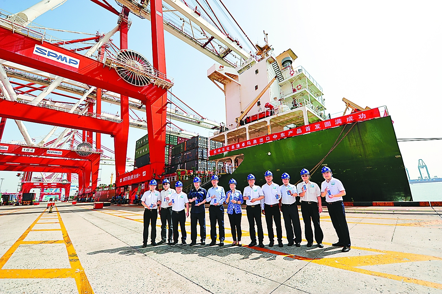 卓玛泉出口中东产品首发仪式在天津港举行。