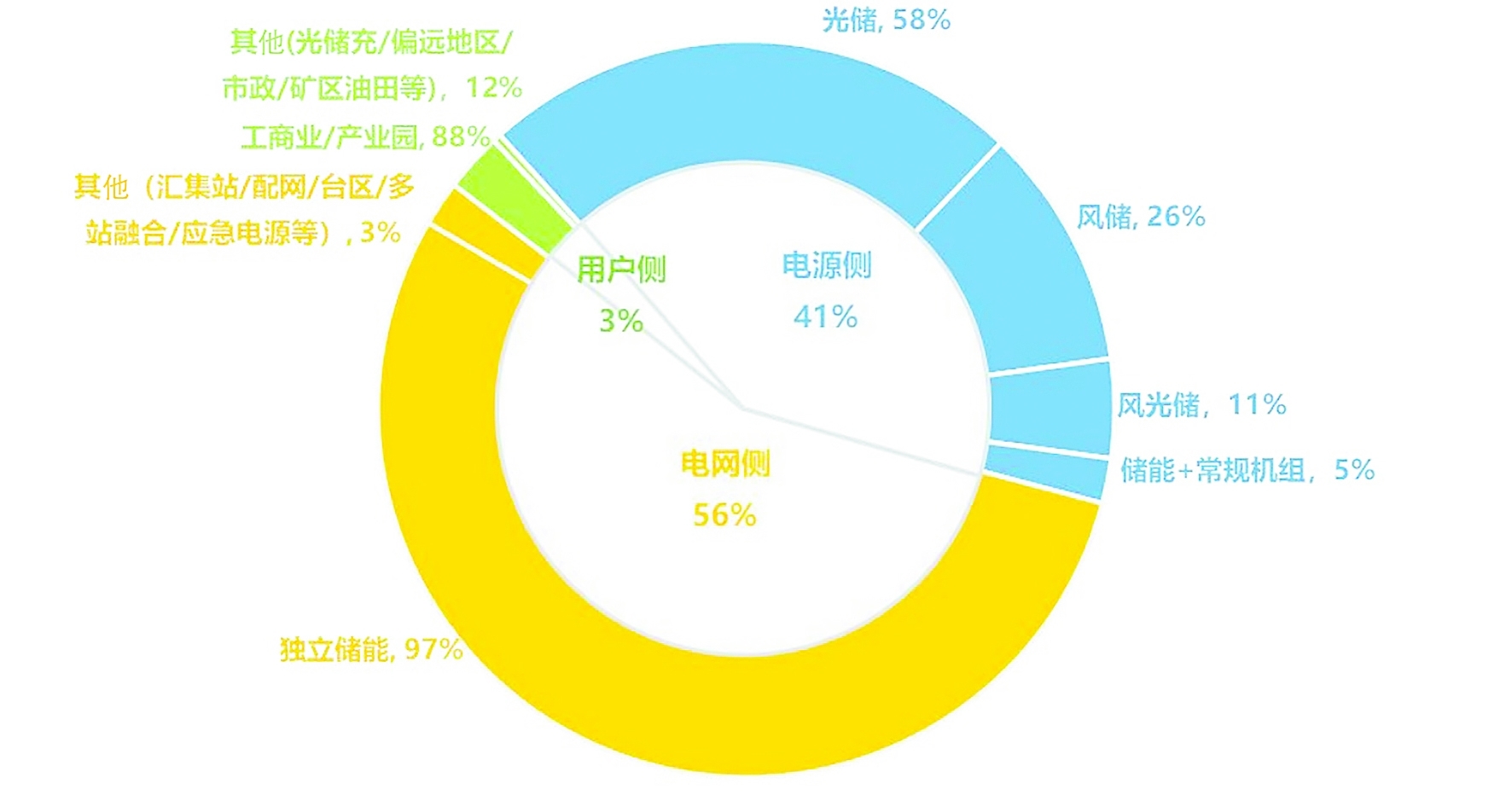 2023年,规模等级上,百兆瓦级项目数量增速明显,100余个百兆瓦级项目相继投运,与上年相比增长370%;规划/建设中的百兆瓦级项目数量550余个,比上年增长41%。