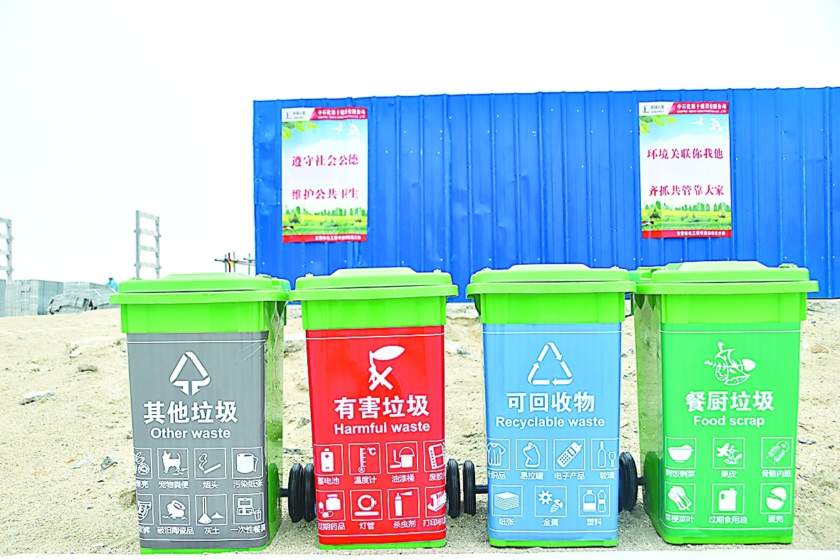 治理工程建设废弃物也是五建公司实现绿色低碳施工的关键措施之一。在项目建设过程中,该公司加强与业主沟通协调,按照生活废弃物和工业废弃物分别设置垃圾临时存放场地,对产生的垃圾分类收集处理,并设置规范的标识标签,建立危险废物识别清单和危险废物管理台账,实现危险废物从运输到处置的全过程监控,从源头消除了项目建设的环境污染隐患。