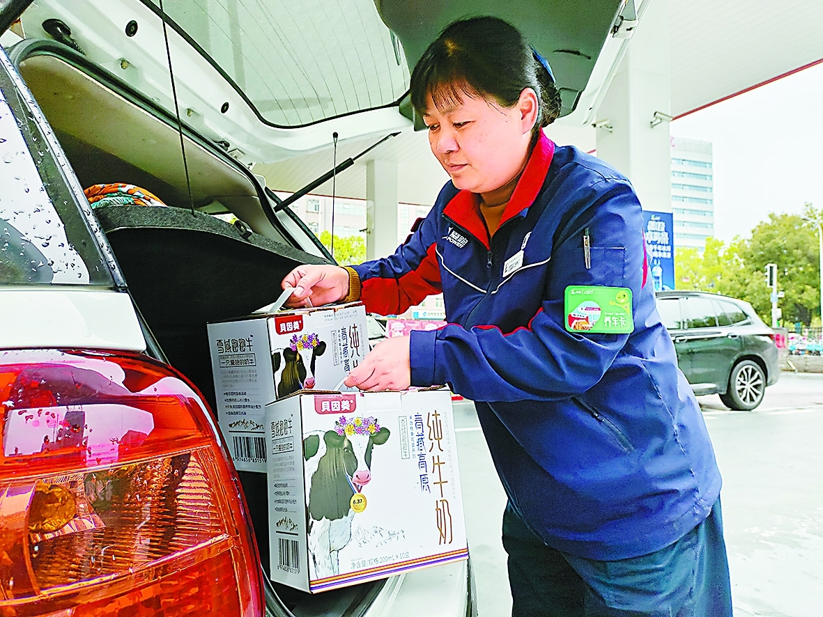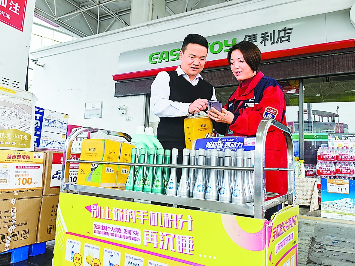 在加油间隙,余美琴会快速辨析,在适当时机提醒客户查看会员积分,告知时效性。她认为,通过积分兑换,把客户引导进入便利店就已经成功了一半。很多客户面对活动商品选择困难,余美琴会根据其积分情况,推介多种商品组合,轻松激发客户的购买欲。