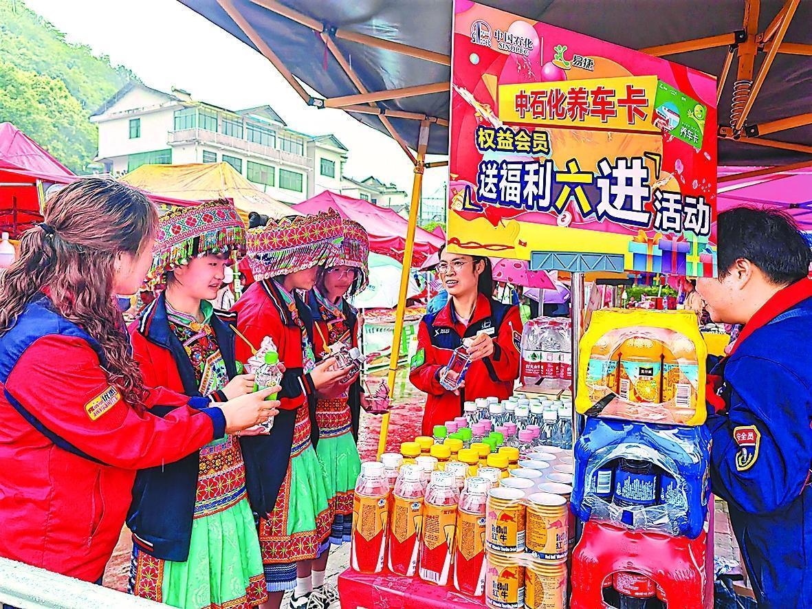 此外,贵阳石油优化销售品类,根据当地居民在“民族文化节”定时定点采购的风俗习惯,结合当季营销活动,推出物美价廉的粮油、牛奶、零食礼包及老干妈、刺梨汁等农特产品礼包,把“惠民福利”搬进村民赶集的乡场,把急需商品送到农户家里,把优质服务做到农户心里。