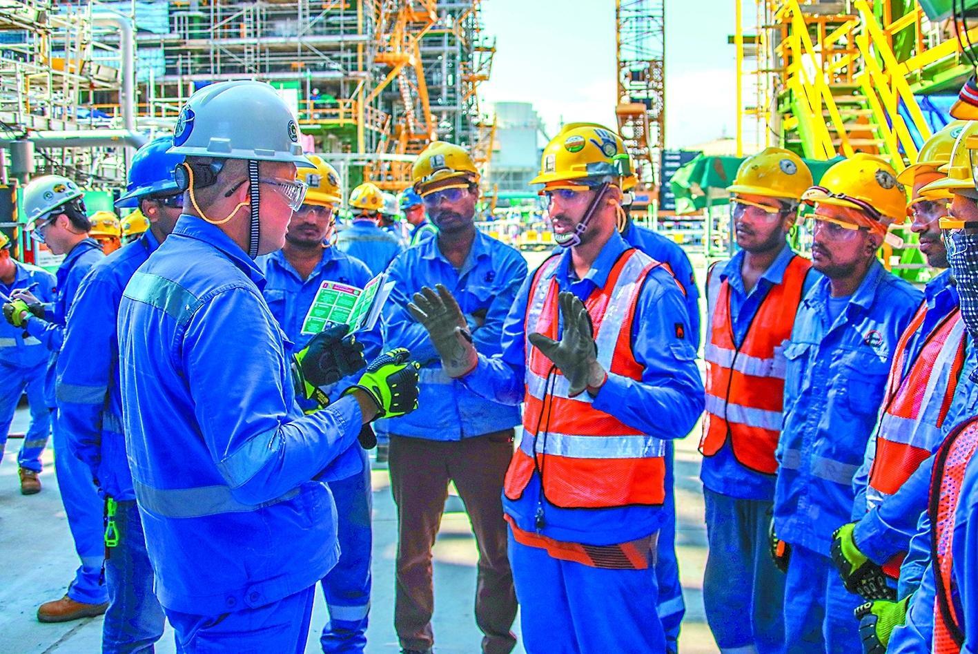 常规培训中,项目部严格执行新加坡劳工部和业主埃克森美孚的标准,扎实开展通用技能、重点岗位人员、新上岗人员等专项培训,并进行理论和实操考核,完成技能水平认定,实现员工素质教育专业化、科学化、常态化。