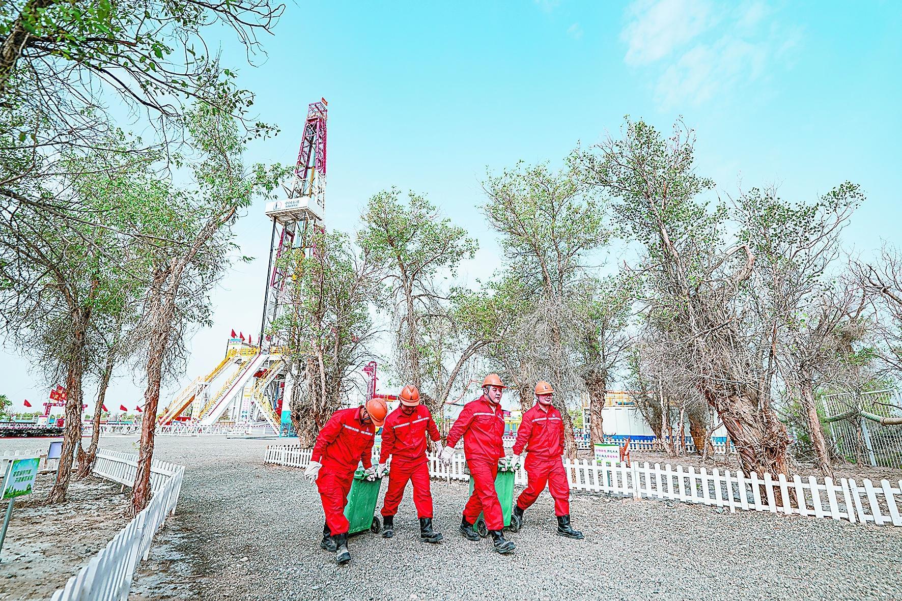江汉石油工程:花园式井场内,钻塔与胡杨“共生”