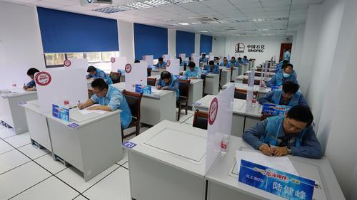 近日,上海石化举办第二届“最强操作”竞赛内操技能比赛。此次比赛采取盲选抽签方式,共抽取下属各单位的18支队伍36名选手参赛。比赛内容以生产应急知识为主,主要考察内操人员面对生产异常情况的应急处置能力和操作能力。图为生产应急预案笔试答题现场。李英豪 摄 吉雨童 文