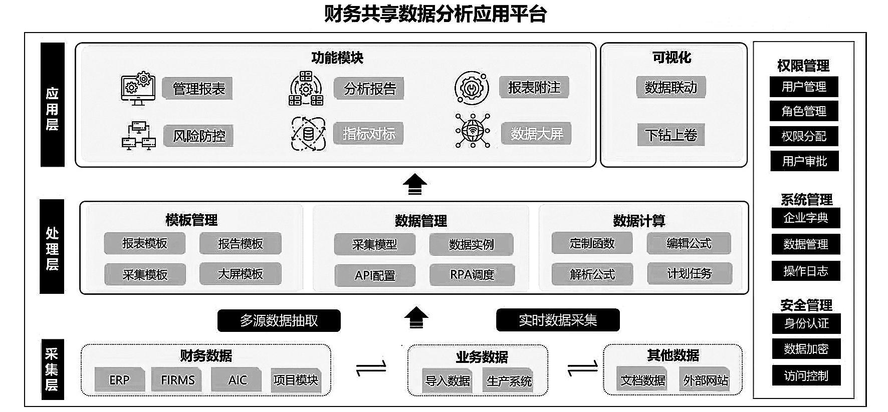 共享服务公司聚焦提升共享服务战略支撑力、价值创造力、内生驱动力,于2020年自主设计开发了财务共享数据分析应用平台(以下简称“平台”)。该公司完成了中国石化财务指标报告管理系统(FIRMS)、企业资源计划(ERP)、费用报销系统(ERS)等数据采集模型的相关工作,形成了基于平台的管理报表、分析报告、报表附注、风险防控等系列数据分析应用服务产品,助力企业进一步提升基于信息化、数字化、智能化的高效决策能力和精益管理水平。