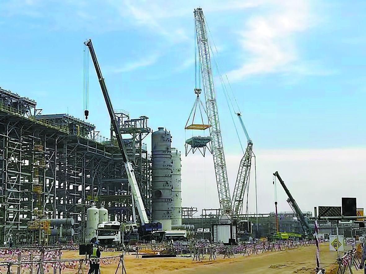 在大型设备模块化施工过程中,项目部通过增加塔器设备钢结构平台、工艺管道预制深度等措施,提升了设备安装工效,脚手架搭设成本也降低了近30%,有效减少了中外参建员工高处作业风险点800余处。在全部设备安装过程中,超过70%的设备实现了模块化施工,加快了硫黄回收装置的整体建设进程,项目创效跑出了“加速度”。