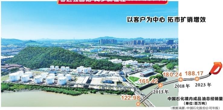 多年来,中国石化坚持以客户为中心,紧跟成品油市场需求变化,发挥一体化优势,精准实施差异化营销策略,努力拓市扩销增效。2023年境内成品油总经销量创历史新高。