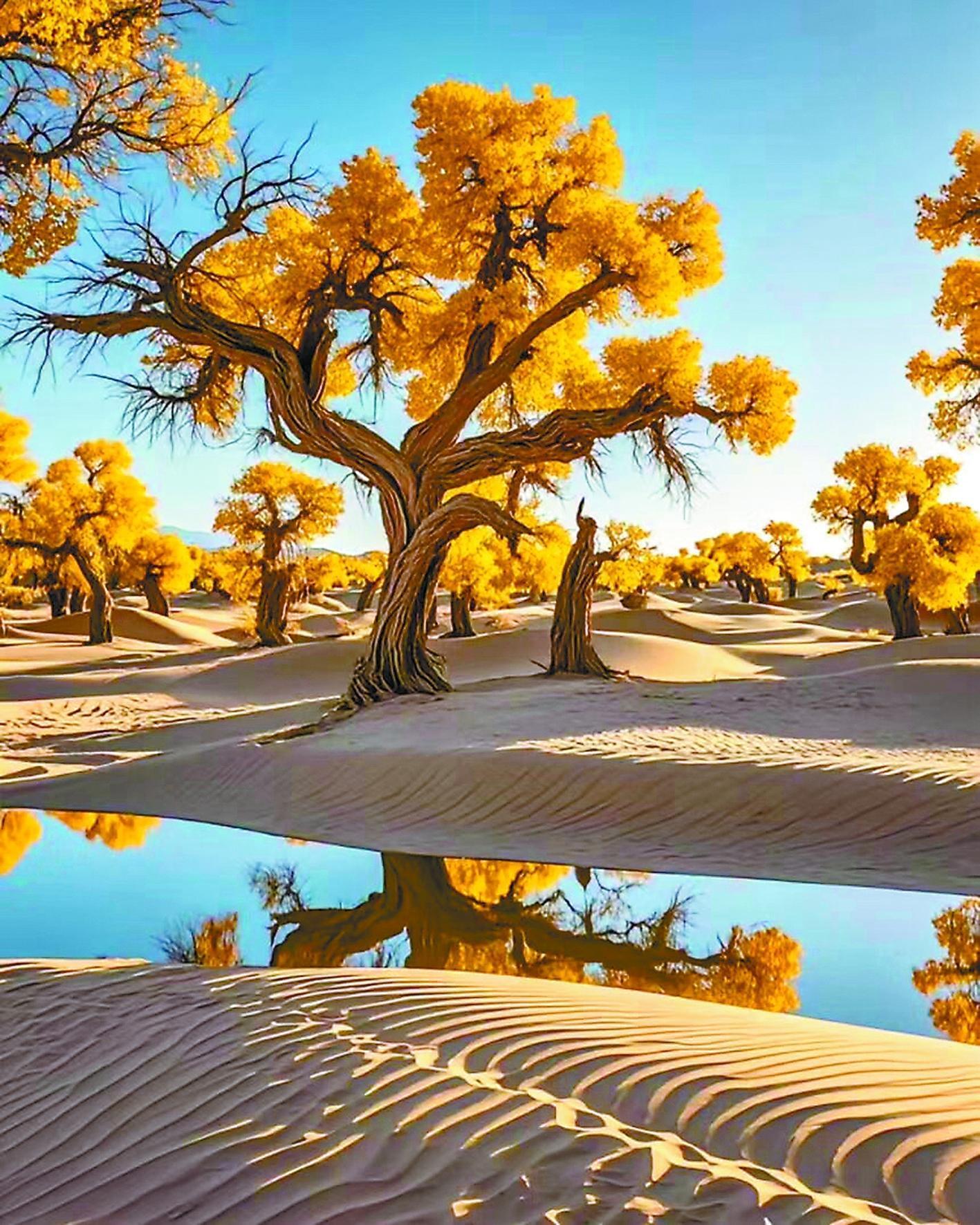 今年,我们的井队在西北大漠打井,我第一次近距离地感受胡杨林的美,欣喜异常。