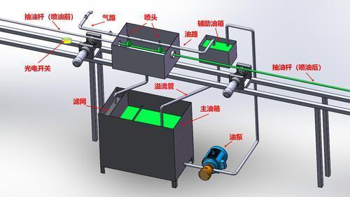 为了保证抽油杆的喷涂效果,QC小组成员又设计了分体式油箱,对油箱液面与雾化器的高度进行调整,便于油泵将机油输送至喷油装置。同时还设计安装了PLC(新型工业控制装置),对自动喷油精准控制。