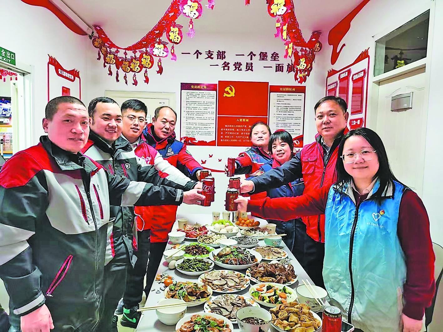 春节期间,北京石油结合“情暖驿站 满爱回家”系列活动,充分发挥420座“公共区域职工之家”“24小时智慧驿站”“爱心驿站”及30座“小哥加油站”、19座“司机之家”的服务功能,升级“3+10+X”增值服务,全力保障节日期间服务质量,进一步传递石化温暖。图为北京京东石油暖风加能站邀请快递小哥一起吃年夜饭。吕庆国 摄 徐海霞 王 玲 文