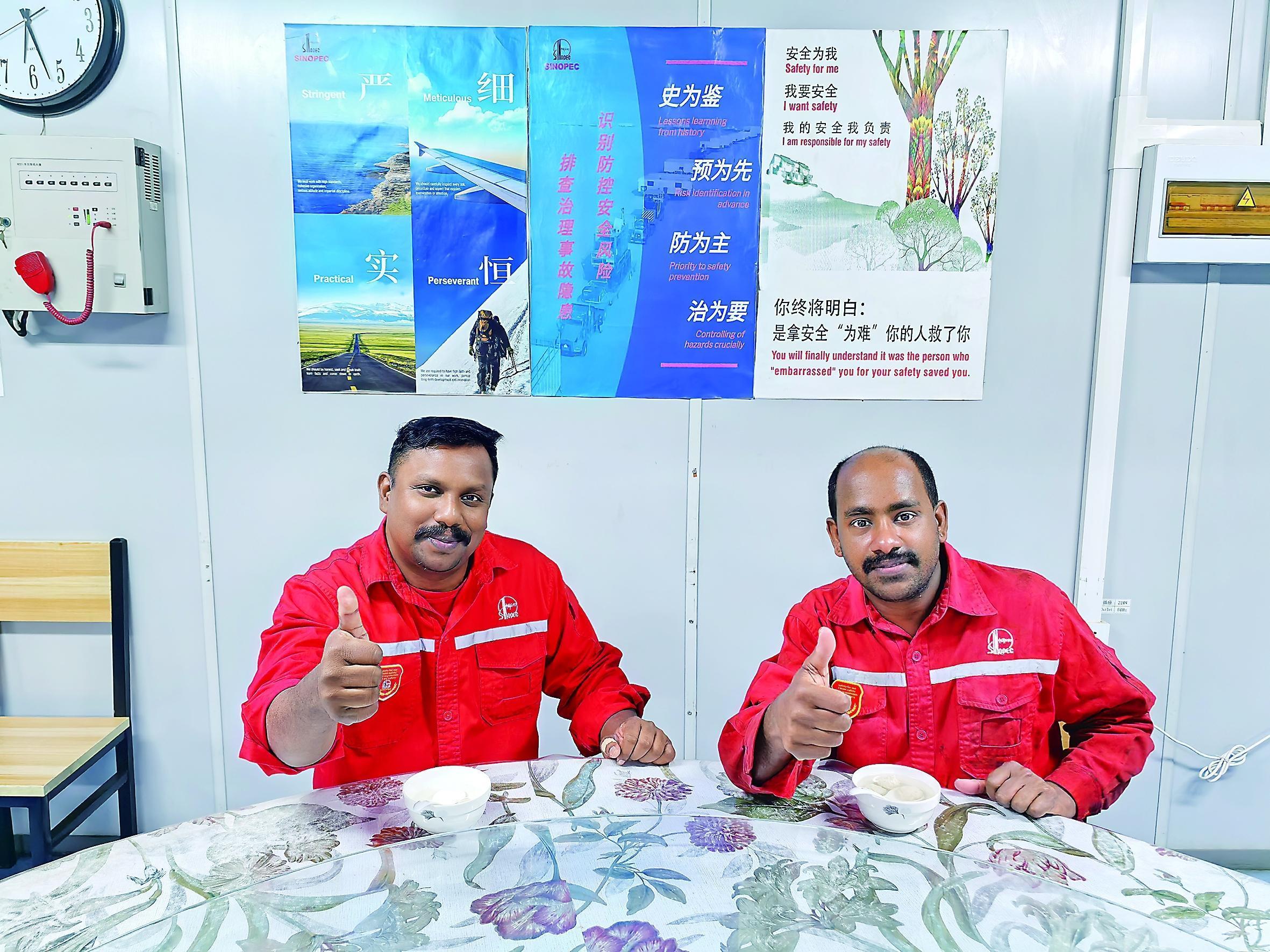 SP-981队的外籍员工主要来自印度、巴基斯坦、尼泊尔等多个国家,文化与生活习惯各异,但都具备英语交流能力。该队平台经理王东说:“我们利用班前班后会、作业前安全分析会组织外籍员工一起分析作业风险点,大家的安全意识都大幅提高了。”